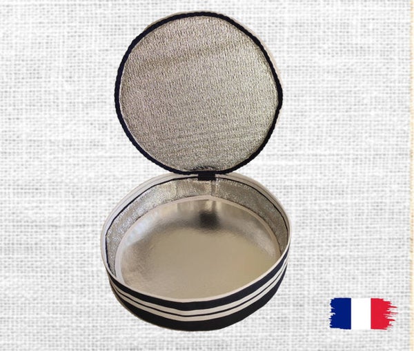Sac à tarte rond isotherme 33 cm Bleu marine et blanc
