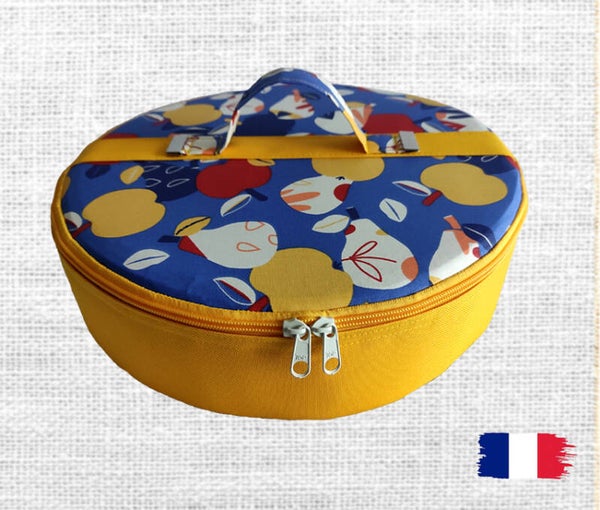 Sac à tarte rond isotherme 33 cm Jaune et motifs fruits multicolore