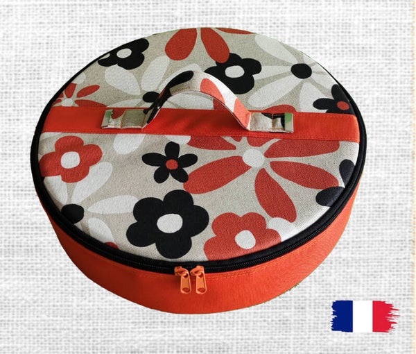 Sac à tarte rond isotherme 33 cm Couleur lin fleurs oranges